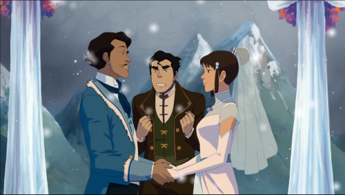 Volviendo una última vez en este review al final, después de un salto temporal pequeño pero no determinado, podemos ver que todos están en la boda de Varrick y Zhu Li. Y están todos listos para celebrar, se cierran algunos argumentos como el del ex Reino Tierra, ex Imperio Tierra que ahora será Nación Tierra (?) ya que Wu, el heredero, destituirá la monarquía para hacer paso a elecciones democráticas por estados independientes bajo el gobierno Tierra.