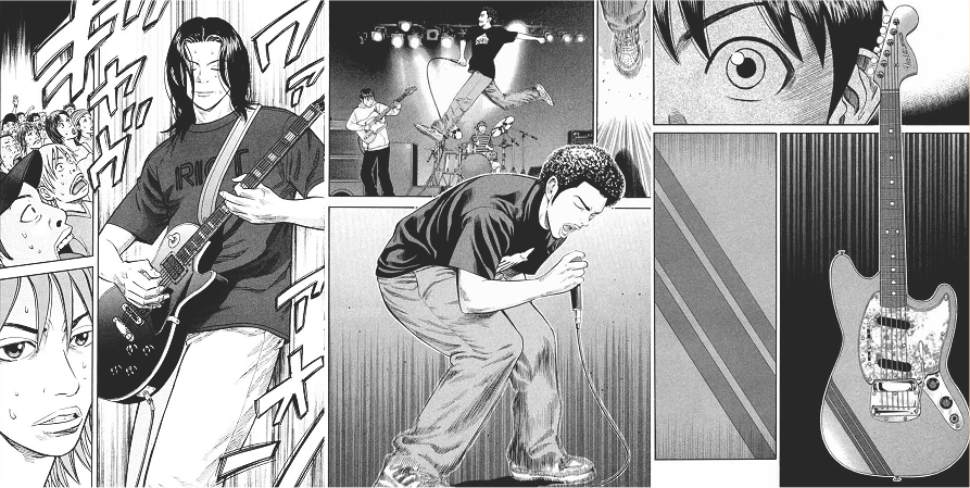 Y, para terminar, tenemos a Eddie Lee, el ex-mejor amigo de Ryusuke. ¿Quién es Eddie? ¿Qué fue de él? ¿Por qué fue tan fuerte el lazo que lo conectó a Ray? El robo de Lucille, una famosa Gibson Les Paul nos dejará entre-ver esta parte de la trama, donde también conoceremos el pasado de Ryusuke y el por qué de su forma de actuar. Este hilo es para mi uno de los más fuertes e importantes del manga, así que no pueden perdérselo, así como tampoco pueden dejar de conocer a las bandas rivales que pronto aparecerán en los tomos.
