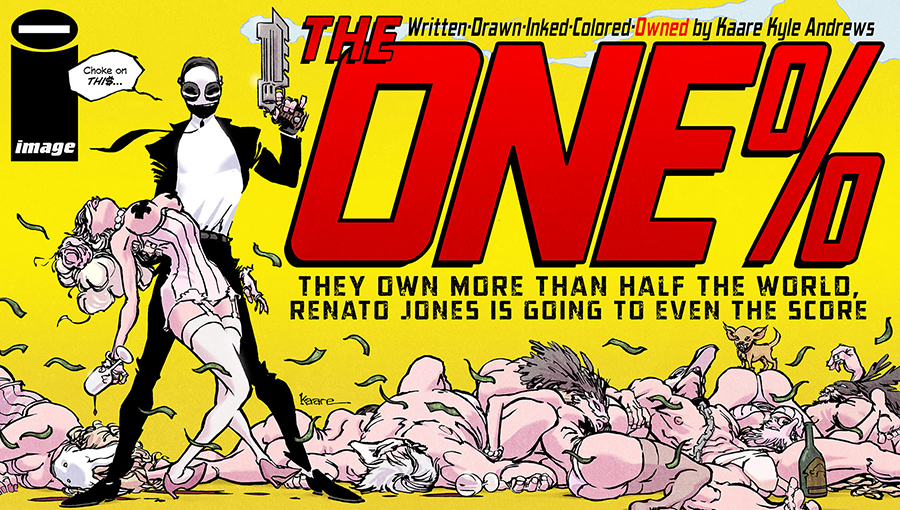 Sorprendentemente, Kaare Andrews aún no ha publicado ningún cómic creator-owned, un hecho que pronto será rectificando con The One %. Esta serie se centra en torno a un personaje llamado Renato Jones y su búsqueda para vengarse de la élite rica, que controlar más de la mitad de las riquezas del mundo.
