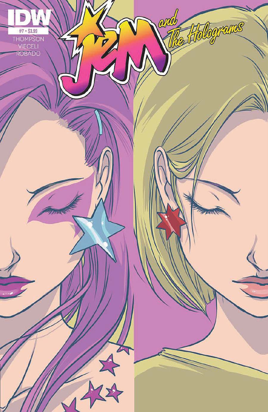 Cambiaron el artista y pasamos de un estilo muy infantil a un estilo manga Estado Unidense, y de alguna forma eso influyó en el guión, ya que el episodio de esta semana es un tanto más triste y desesperanzador que de costumbre. Pasamos por 5 números en que las Jem podían solucionar los problemas con solo la fuerza del amor, ya resuelta la dificultad anterior (que era no poder participar en el versus con las Misfits) se debe presentar el nuevo conflicto, y ya sentimos en esta vista preliminar del dilema que será un poco más oscuro y enredoso. Se presenta un par de enemigos nuevos que la verdad son muy clichés, el manager ambicioso y el chico hacker.