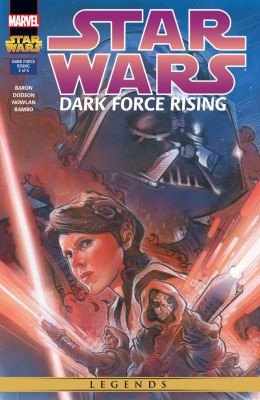 Terry Dodson y Kevin Nowlan se encargan de Dark Force Rising. Acá hay un estilo más "realista" —extraño considerando su arte actual para el cómic Princess Leia, pero su sello se identifica en ambos—, los personajes son mucho más parecidos a sus símiles en la vida real. Dibuja mucho más fondos genéricos de un solo color, enfocándose en los personajes. Hay cierto juego con las sombras que le dan un toque diferencial del resto del libro.