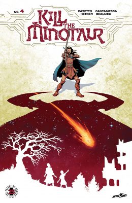 Llegamos al momento tan esperado, por fin nuestros héroes están reunidos nuevamente y esta vez se enfrentaran al Minotaur con intenciones de asesinarlo. ¿Pero este monstruo está correctamente nombrado? Al parecer no nos encontramos frente a una impía criatura fruto del amor entre la esposa de Minos y un toro, sino que la criatura proviene de un lugar mucho más lejano. Esta revelación nos permite entender los intrincados diseños (algunas escenas me han recordado conceptos del famoso artista H.R. Giger, conocido por las cintas de Alien) y peligros que pueblan el laberinto, pero con qué fin fue enviada esta criatura en la nave espacial seguirá siendo un misterio por ahora.