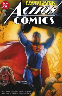 Cada uno de esos momentos es interrumpido por pequeños relatos hechos por un tercero respecto a nuestro protagonista, generalmente en blanco y negro, historias sencillas contadas por gente común y corriente, en un mundo donde existe Superman pero en el que perfectamente puede ser el nuestro, uno donde este súper-hombre es solo un personaje de cómics. Estos pequeños momentos son los más efectivos y exquisitos del número, dibujados por un ejército de dibujantes clásicos del personaje. No deja de enternecer ver cómo crece la familia supermaniana, con artistas que 100 números atrás ya eran conocidos de sobra como Dan Jurgens, Jim Lee o Klaus Janson, pero sumados a nuevos que ya estaban dejando su huella como Ed McGuinness, Lee Bermejo o el increíble Alex Ross.