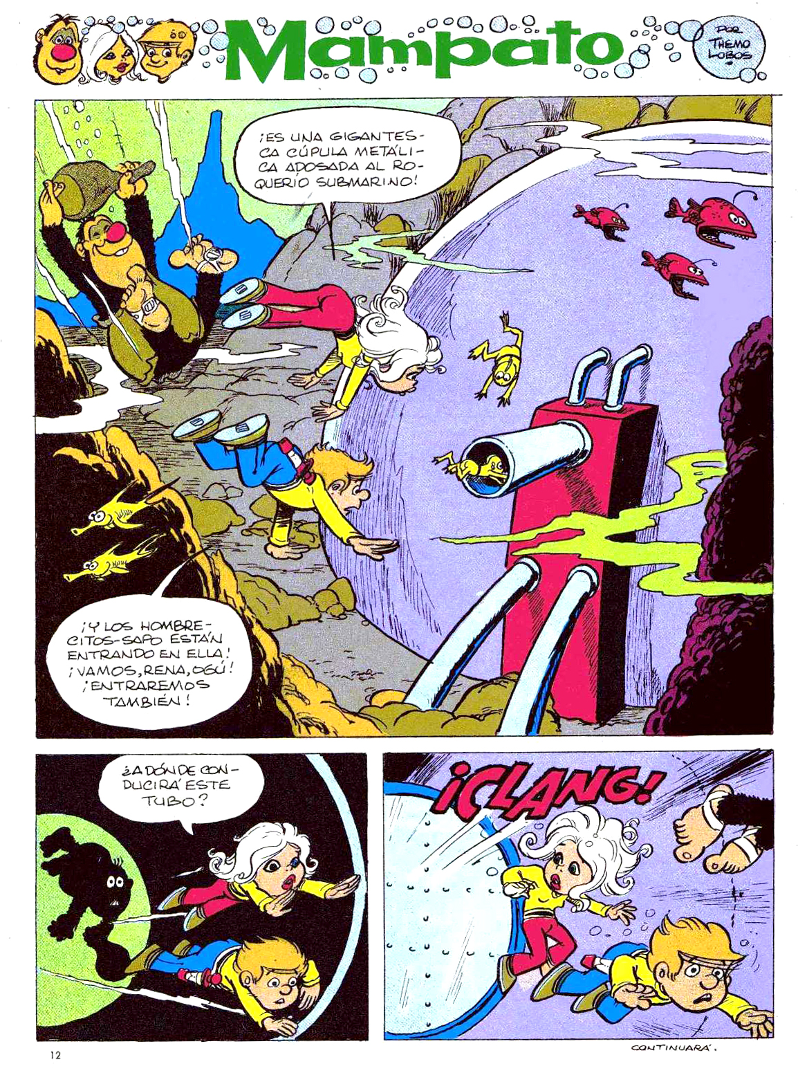 De todas las épocas que visitamos en la Revista Mampato, el siglo 40 es la perfecta excusa que Themo Lobos tiene para dar rienda suelta a su imaginación. No requiere anclarse tanto a la función educativa de su propuesta, sino centrarse de lleno en la función lúdica y aventurera, por lo que esta vez "El Mundo Submarino" se ve como una propuesta original con las posibilidades infinitas que brinda el futuro.