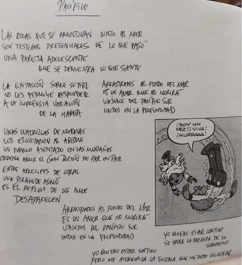 Por lo mismo, esta historia submarina tiene una trama altamente sencilla, casi sin historias pequeñas entremedio. Es directa a lo que convoca a los personajes y nada más. Themo nos regala varias viñetas de gran tamaño para mostrar la apertura del mundo acuático, algunas con gran calidad, y otras algo más borrosas o apresuradas. Es eso finalmente, se siente mucho más apurado y apresurado el trazo en algunas partes, y dada la sencillez del relato, pareciera querer avanzar más veloz, quizás presionado por el tiempo o los ajetreos editoriales, quién sabe.