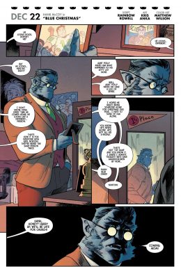 Antes que nada, hay que aclarar que The Merry X-Men Holiday Special es una antología, pero incluso dentro del formato, es única. En lugar de presentar tres o cuatro relatos múltiples que comparten un tema en común, este número tiene una historia diferente para cada día del mes de diciembre, transcurriendo en tiempo real hasta llegar al día de Navidad. Así, se nos presentan veinte historias de una página cada una —con misma cantidad de equipos creativos, al estilo de Marvel Comics #1000—relacionadas con esta celebración, y otra historia de diez páginas que se entrelaza entre las anteriores. Debido a la gran cantidad de relatos, es inoficioso discutir cada una de ellas individualmente, pero sí es bueno hablar sobre algunas de las más entretenidas.