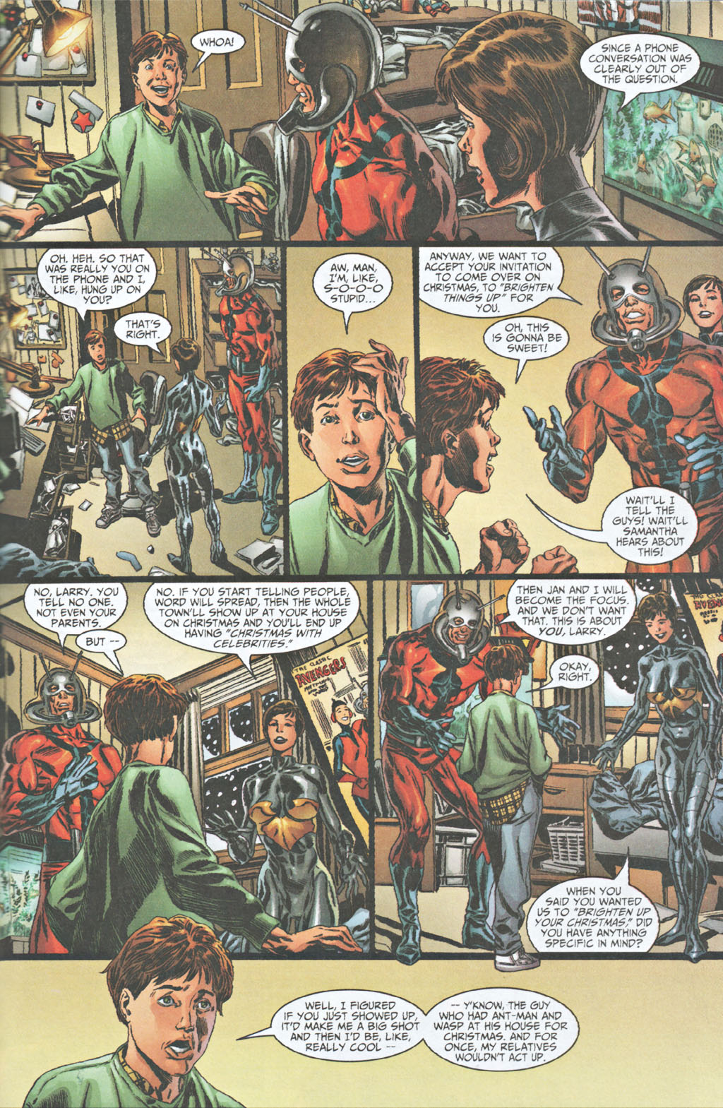 La trama: todos en la mansión Avengers se están preparando para las vacaciones, a excepción de Hank Pym, también conocido como Ant-Man, como Giant Man, como Goliath, o como Yellowjacket. Es que en realidad, Pym tiene una historia de cambiar su identidad superheroica cada pocos años, aunque en el momento en que se publicó este título estaba utilizando el nombre de Giant Man. Sin embargo, la llegada de la carta de un niño a la mansión solicitando la ayuda de su ídolo Ant-Man para que lo ayude a salvar su navidad, hará que Hank desempolve su casco hormiguero y reclute a su esposa Janet Van Dyne para acudir a la llamada de auxilio.
