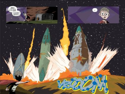 Su dibujo y diseño de personajes ahora evocan a otro de sus grandes héroes, el brasileño Gabriel Bá —Daytripper—, y de hecho, a cualquier lector casual podrías decirle que estas páginas pertenecen a algún capitulo perdido de The Umbrella Academy, y no desconfiaría de ti.
