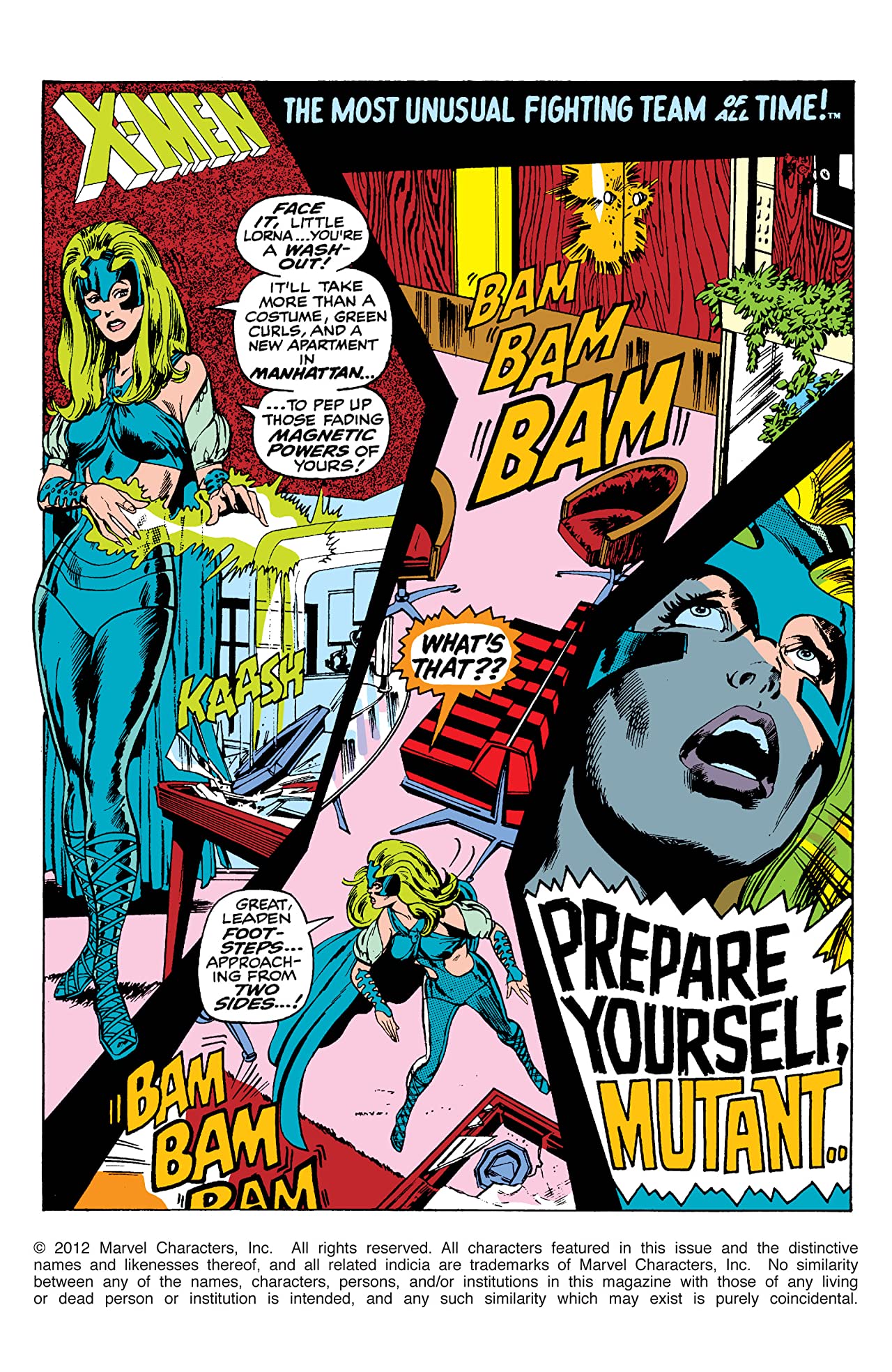 En la aventura contra Sauron, encontramos algunos detalles interesantes. Por un lado, se presenta un nuevo traje de Warren, el del diseño azul y blanco, que sólo se merece alabanzas y que es seguramente uno de los mejores rediseños de un superhéroe de la historia. Por otro, la secuencia muda de la página 18 del X-Men #62 es uno de los motivos por el que Adams se alegró de trabajar con el mismo Thomas como editor, más laxo y dado a la experimentación, y no con Stan Lee, más conservador: “Aquí el diálogo no es necesario. No digo que Stan Lee hubiese puesto diálogo aquí, pero probablemente sí”. La escena es perfecta y Thomas decide mejorarla únicamente pidiéndole a Tom Palmer que añada el dibujo de la flauta del villano rota en la última viñeta, con la que éste ya no puede controlar a los monstruos del lago.