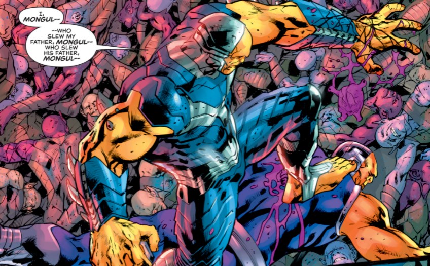 ¿En qué estaba Superman en su etapa previa? El personaje estaba en manos de Brian Michael Bendis, en una etapa con resultados mixtos. Bendis se hizo cargo de las publicaciones Superman y Action Comics. La segunda es una buena lectura e interesante, pero con menos impacto directo en el personaje. La primera es donde se plantean los principales cambios al personaje, con dos centrales: 1) El crecimiento acelerado de niño a joven de Jon Kent y su posterior afiliación con la Legión de Superheroes; y 2) La revelación voluntaria de la identidad secreta de Superman al mundo. Entre otros eventos, todos los habitantes de Kandor ven la muerte, quedando aún menos kryptonianos vivos en el presente. Además, en apariencia menos relevante, Superman: Villains #1 nos presenta a un nuevo Mongul, quien mata a su padre, el anterior Mongul, y toma el poder de Warworld, el planeta lleno de esclavos, cadenas y también un dramático coliseo de peleas. Mongul tiene varias teclas típicas de villano de Superman, fuerte, grande e inapelablemente malvado. En general pocas veces ha mostrado ser un rival a la altura del personaje, más bien ha sido bastante desaprovechado. Esto ya lo mencionó Kennedy en una entrevista, por lo que está dispuesto a darle el espacio necesario para hacerlo un rival más que digno al personaje, y sacando lo propio del personaje.