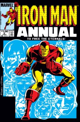 Escrito por Peter Gillis y dibujado por Luke McDonnell, acá encontramos un bonito crossover entre el Hombre Hierro y los eternos. Debido a un mal funcionamiento de la armadura durante una prueba Iron Man —por entonces Jim Rhodes— termina en Olympia, hogar de los eternos, justo durante un ataque de los desviantes, guiados por su comandante, Kro.