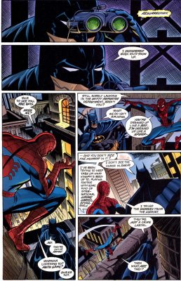 Esta vez, Spidey es el amistoso trepamuros que todos conocemos y amamos, felizmente enamorado de Mary Jane, y utilizando un look más que un poco parecido al de John Romita Sr. en algunos paneles. Batman en tanto, se comporta como siempre, distante y misterioso. Pero ese enfoque de tratar de ser el Alfa en el dúo realmente funciona a favor de la historia, agregando algo nuevo y divertido para el tono general.