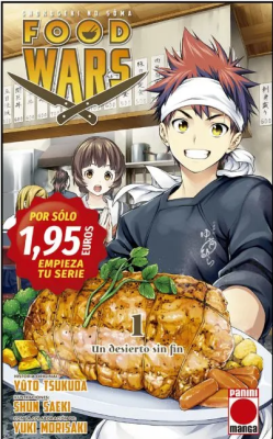 Esto ya es una práctica habitual de Planeta Cómic, y ahora se le suma Panini España, que este mes publicará ediciones económicas de los #1 de tres de sus series más conocidas: Food Wars, Hunter X Hunter y Assasination Classroom, a un precio de apenas 1,95€ cada uno. La primera, Food Wars: Shokugeki no Soma, sigue las aventuras de Soma Yukihira, un estudiante de secundaria cuya familia lleva un pequeño restaurante de barrio. Soma practica cada día junto a su padre con el objetivo de lograr ser mejor cocinero que él. Un día, su padre sugiere la posibilidad de que Soma entre en una escuela de cocina y aquí empieza la nueva etapa culinaria de Soma, que intentará convertirse en el mejor cocinero de Japón.